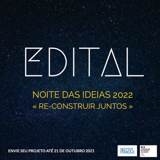 Para participar da Noite das Ideias, o idealizador do projeto deve propor um evento sobre o tema "(Re)construir juntos" a se realizar na quinta-feira, 27 de janeiro de 2022.